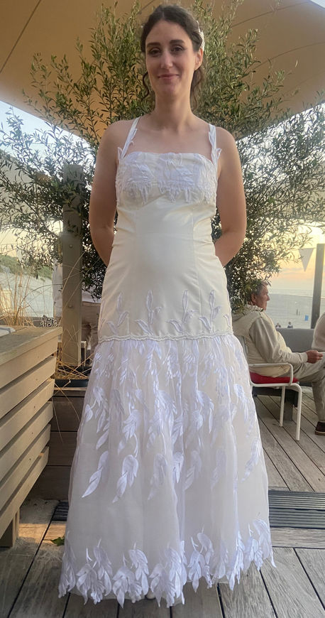 Als Erstes zählt dein ganz persönlicher Wunsch. Dann entwickeln wir gemeinsam die Idee für das Design. In meinem Repertoire habe ich mittlerweile viele Brautkleider, die uns bei der Umsetzung hilfreich sein können. Ich werde soviel wie möglich vorhandenes Material verwenden um möglichst nachhaltig zu arbeiten. Es besteht die Möglichkeit sich durch diese inspirieren zu lassen und sie komplett oder Teile davon als Basis des neuen Designs zu verwenden.